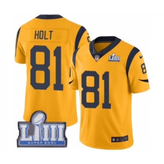 >Youth Nike Los Angeles Rams #81 Torry Holt Limited Gold Rush Vapor Untouchable Super Bowl LIII Bound NFL Jersey