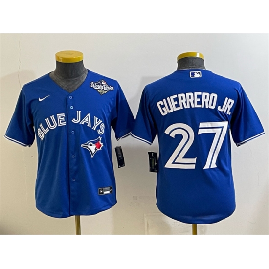 >Youth Toronto Blue Jays #27 Vladimir Guerrero Jr. Royal 2025 World Series Cool Base Stitched Baseball Jersey