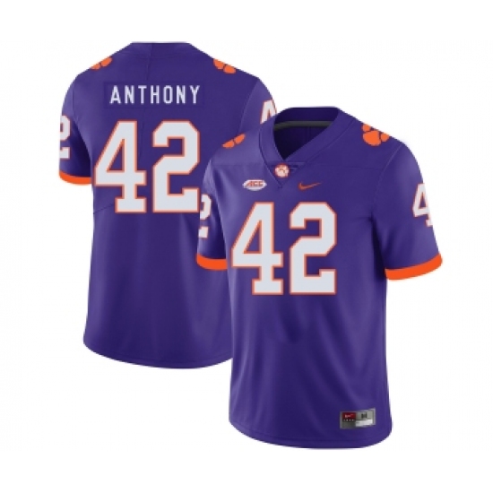 >Clemson Tigers 42 Stephone Anthony Purple Nike College Football Jersey
