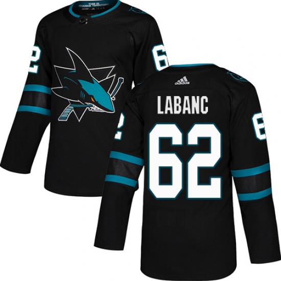 >Men's Adidas San Jose Sharks #62 Kevin Labanc Premier Black Alternate NHL Jersey