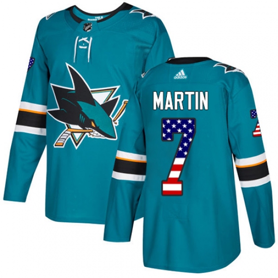 Home>NHL>San Jose Sharks>Paul Martin>Men's Adidas San Jose Sharks #7 Paul Martin Authentic Teal Green USA Flag Fashion NHL Jersey