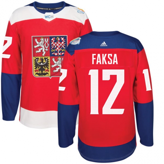 Home>NHL>Team Czech Republic>Radek Faksa>Men's Adidas Team Czech Republic #12 Radek Faksa Premier Red Away 2016 World Cup of Hockey Jersey
