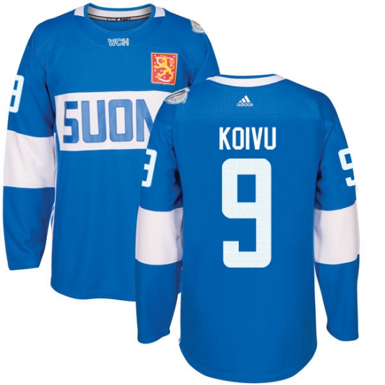 Men's Adidas Team Finland #9 Mikko Koivu Premier Blue Away 2016 World Cup of Hockey Jersey