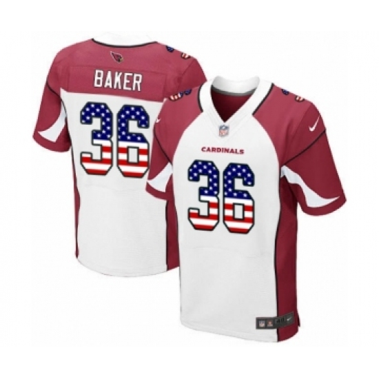 Men's Arizona Cardinals #36 Budda Baker Elite White Road USA Flag Fashion Football Jersey