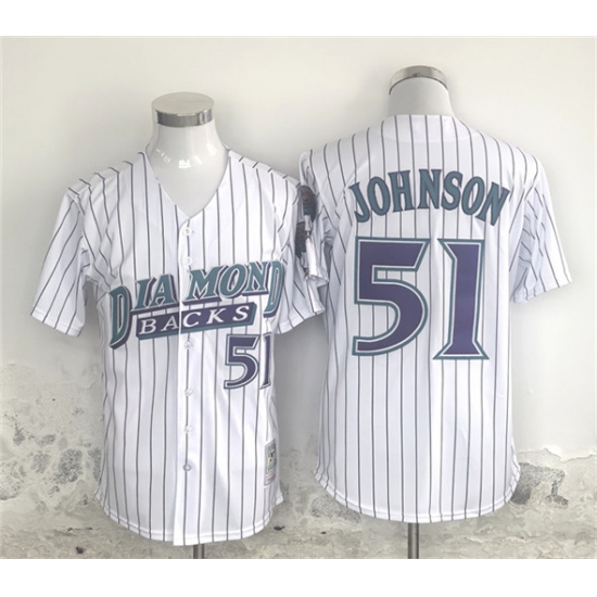 Men's Arizona Diamondbacks #51 Randy Johnson White Throwback Cool Base Stitched Baseball Jersey