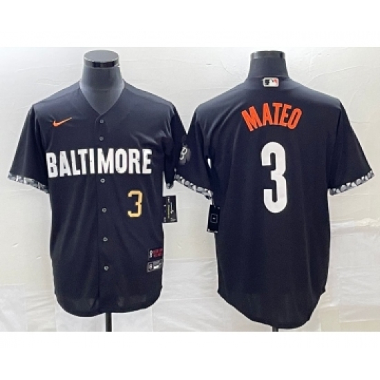 Men's Baltimore Orioles #3 Jorge Mateo Number Black 2023 City Connect Cool Base Stitched Jersey