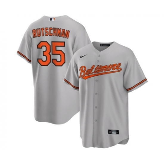 >Men's Baltimore Orioles #35 Adley Rutschman Gray Cool Base Stitched Jersey