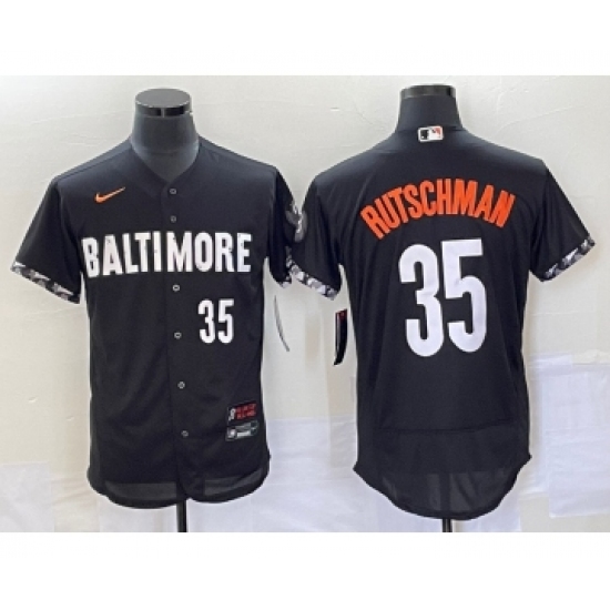 >Men's Baltimore Orioles #35 Adley Rutschman Number Black 2023 City Connect Flex Base Stitched Jersey 2