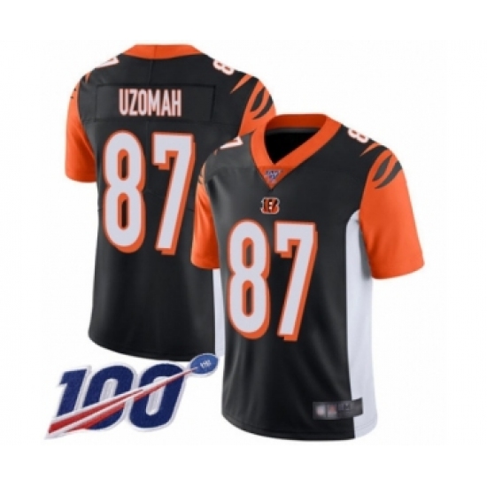 >Men's Cincinnati Bengals #87 C.J. Uzomah Black Team Color Vapor Untouchable Limited Player 100th Season Football Jersey