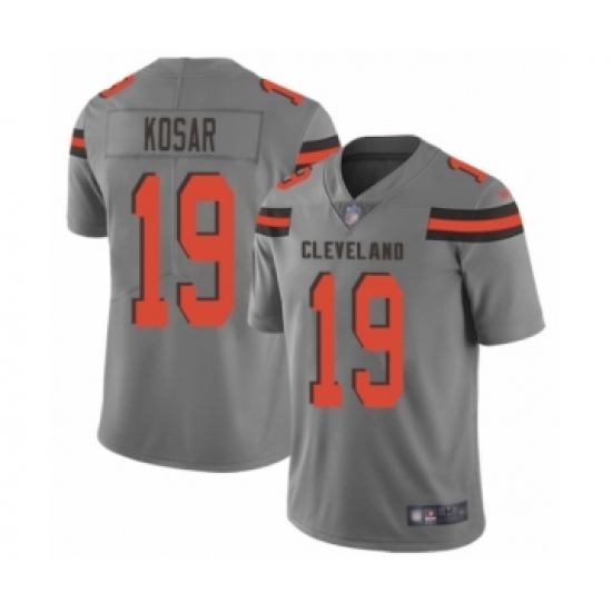 >Men's Cleveland Browns #19 Bernie Kosar Limited Gray Inverted Legend Football Jersey
