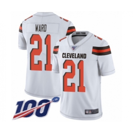 Men's Cleveland Browns #21 Denzel Ward White Vapor Untouchable Limited Player 100th Season Football Jersey