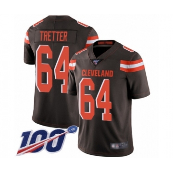 Men's Cleveland Browns #64 JC Tretter Brown Team Color Vapor Untouchable Limited Player 100th Season Football Jersey