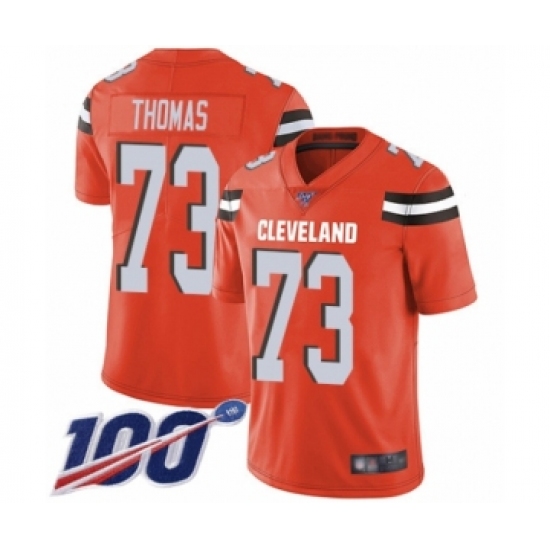>Men's Cleveland Browns #73 Joe Thomas Orange Alternate Vapor Untouchable Limited Player 100th Season Football Jersey