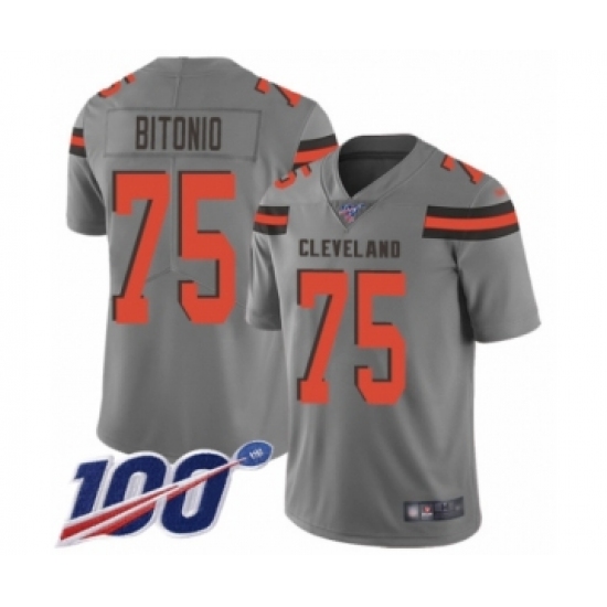>Men's Cleveland Browns #75 Joel Bitonio Limited Gray Inverted Legend 100th Season Football Jersey