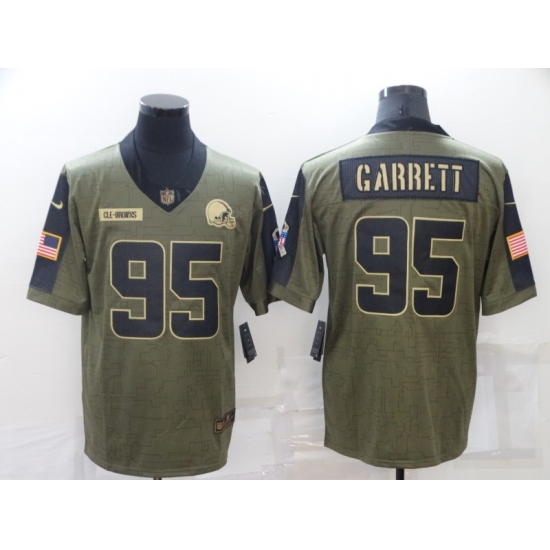 Men's Cleveland Browns #95 Myles Garrett Limited Olive Camo 2019 Salute to Service Football Jersey