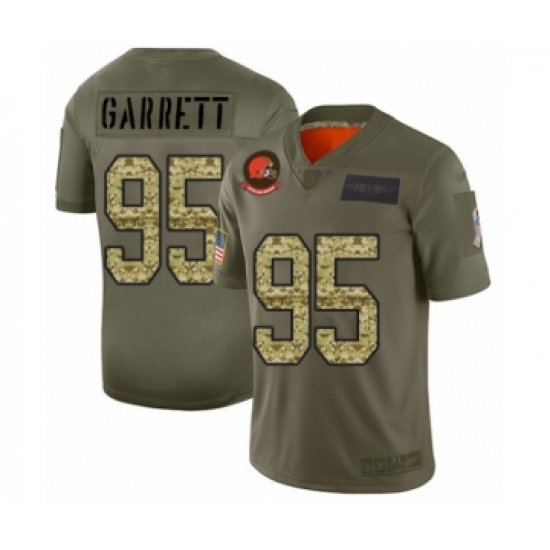Men's Cleveland Browns #95 Myles Garrett Limited Olive Camo 2019 Salute to Service Football Jersey