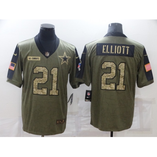 Men's Dallas Cowboys #21 Ezekiel Elliott Camo 2021 Salute To Service Limited Player Jersey