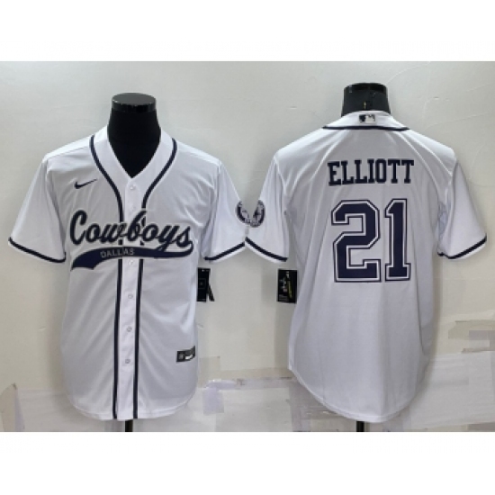 Men's Dallas Cowboys #21 Ezekiel Elliott White Stitched Cool Base Nike Baseball Jersey