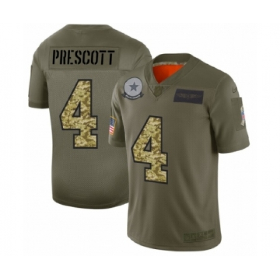 >Men's Dallas Cowboys #4 Dak Prescott 2019 Olive Camo Salute to Service Limited Jersey