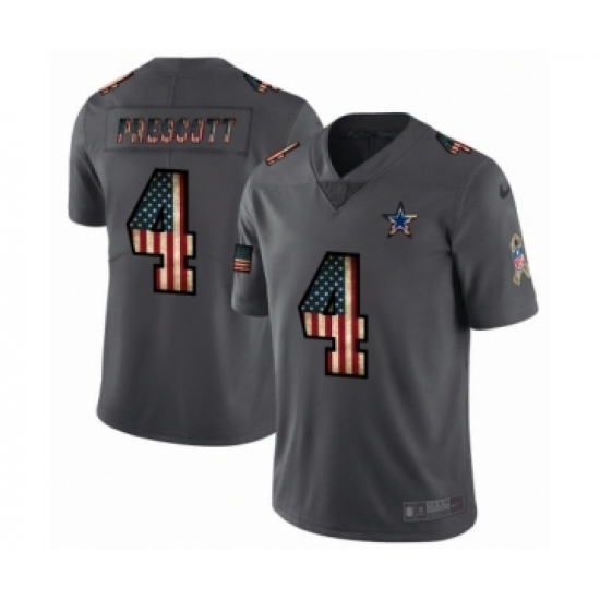 >Men's Dallas Cowboys #4 Dak Prescott Limited Black USA Flag 2019 Salute To Service Football Jersey