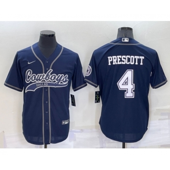 Men's Dallas Cowboys #4 Dak Prescott Navy Blue Stitched Cool Base Nike Baseball Jersey