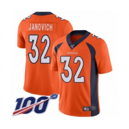 Men's Denver Broncos #32 Andy Janovich Orange Team Color Vapor Untouchable Limited Player 100th Season Football Jersey