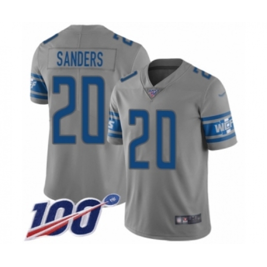 >Men's Detroit Lions #20 Barry Sanders Limited Gray Inverted Legend 100th Season Football Jersey