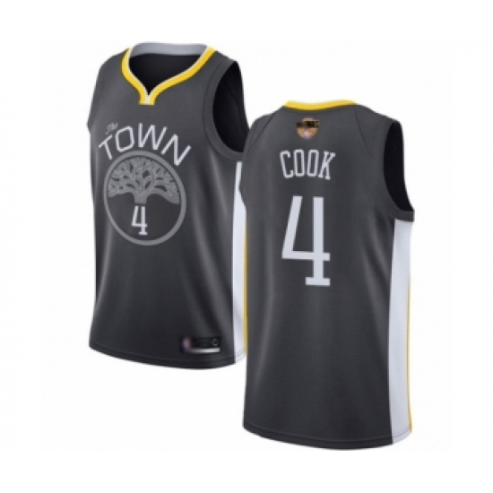>Men's Golden State Warriors #4 Quinn Cook Swingman Black Basketball 2019 Basketball Finals Bound Jersey - Statement Edition
