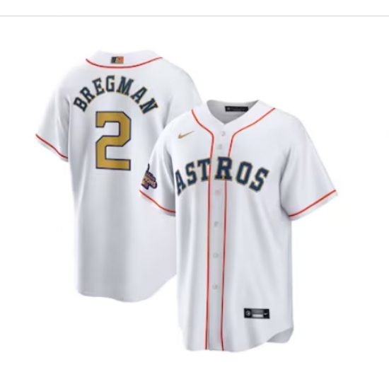 Men's Houston Astros #2 Alex Bregman Nike White Gold 2023 Gold Collection Replica Player Jersey