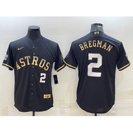 >Men's Houston Astros #2 Alex Bregman Number Black Gold 2022 World Series Stitched Baseball Jersey