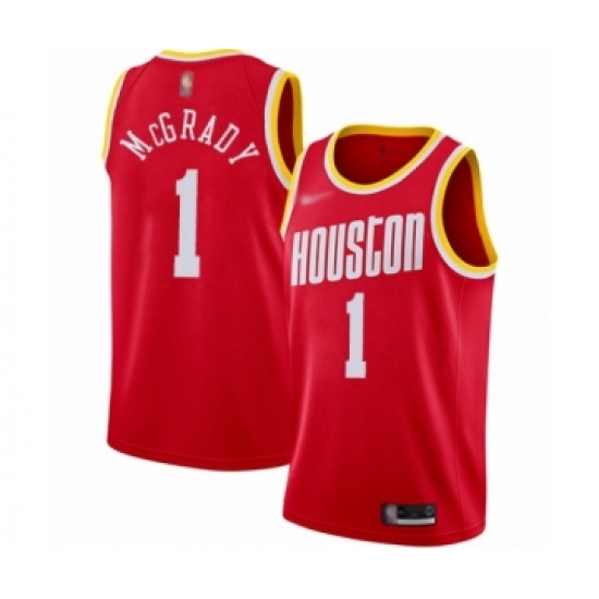 Men's Houston Rockets #1 Tracy McGrady Authentic Red Hardwood Classics Finished Basketball Jersey