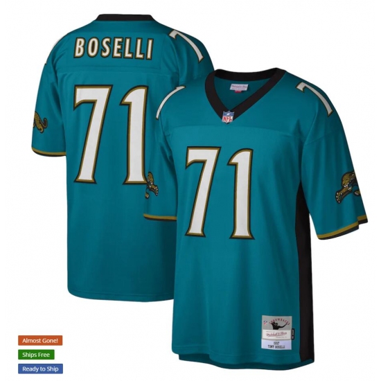 Men's Jacksonville Jaguars #71 Tony Boselli 1997 Mitchell & Ness Teal NFL Throwback Football Jersey