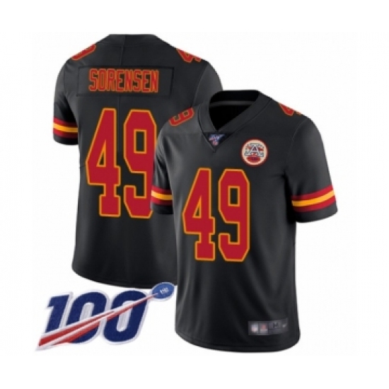 Men's Kansas City Chiefs #49 Daniel Sorensen Limited Black Rush Vapor Untouchable 100th Season Football Jersey