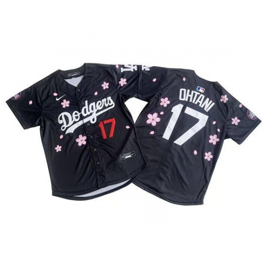 >Men's Los Angeles Dodgers #17 Shohei Ohtani Black 2025 Tokyo Series Limited Stitched Baseball Jersey
