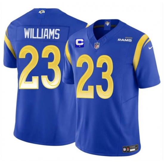 >Men's Los Angeles Rams #23 Kyren Williams Blue 2025 F.U.S.E. With 1-Star C Vapor Untouchable Football Stitched Jersey