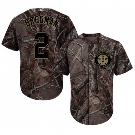 >Men's Majestic Houston Astros #2 Alex Bregman Authentic Camo Realtree Collection Flex Base MLB Jersey