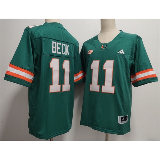Home>NCAA>Miami Hurricanes>Men's Miami Hurricanes #11 Carson Beck Aqua Stitched Football Jersey