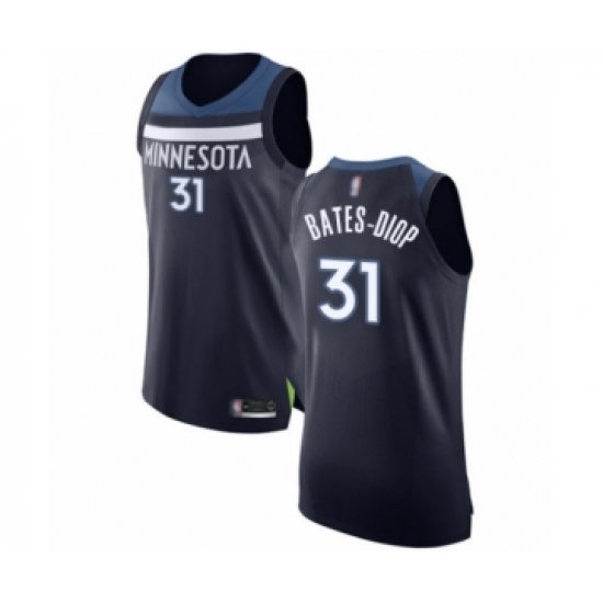 >Men's Minnesota Timberwolves #31 Keita Bates-Diop Authentic Navy Blue Basketball Jersey - Icon Edition