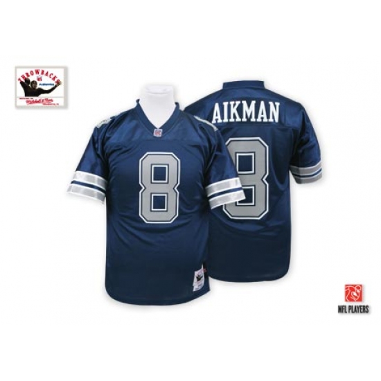 Feel like part of your favorite team by wearing this NFL® Men's Mitchell And Ness Dallas Cowboys #8 Troy Aikman Authentic Navy Blue Throwback NFL Jersey, made of thick, high-quality Pro-Brite fabric for a genuine gridiron look. The players number which 100% stitched is displayed in tackle twill on the chest, back and sleeves, along with the team name on the front. The players name which 100% stitched is displayed on a sewn-down nameplate at the back. 100% Pro-Brite nylon and 100% Pro-Brite polyester for body, 100% lycratalic spandex dazzle for Side Panels/Collar/Cuffs, NFL® Equipment patch sewn on the bottom of the front collar or fabric insert, NFL® Equipment jock tag with numeric sizing is applied to the lower left bottom of the jersey, Officially licensed.
