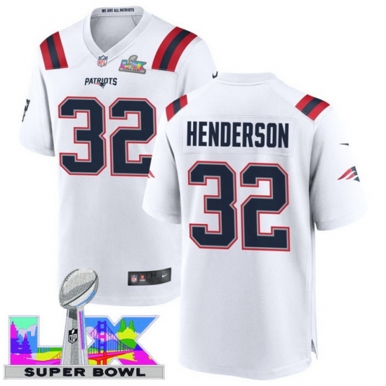 Men's New England Patriots #32 TreVeyon Henderson White 2025 2026 Super Bowl LX F U S E Stitched Jersey