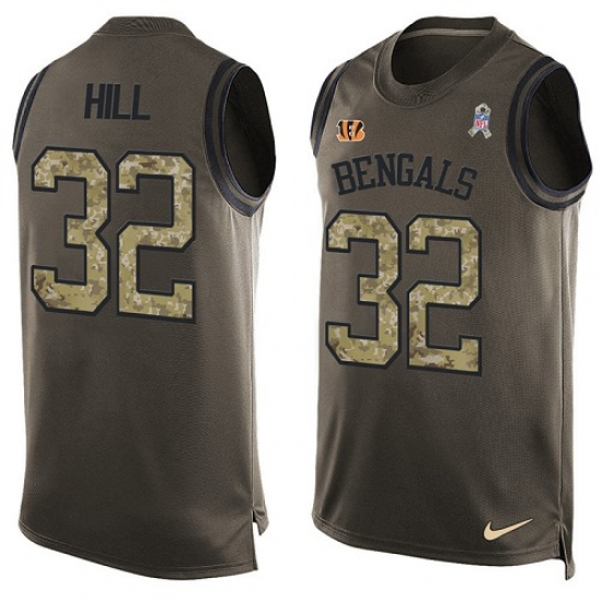 Home>NFL>Cincinnati Bengals>Jeremy Hill>Men's Nike Cincinnati Bengals #32 Jeremy Hill Limited Green Salute to Service Tank Top NFL Jersey