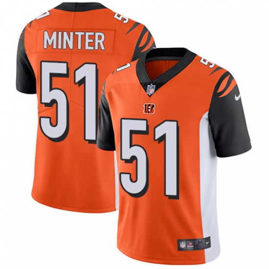 Home>NFL>Cincinnati Bengals>Kevin Minter>Men's Nike Cincinnati Bengals #51 Kevin Minter Vapor Untouchable Limited Orange Alternate NFL Jersey