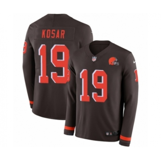 >Men's Nike Cleveland Browns #19 Bernie Kosar Limited Brown Therma Long Sleeve NFL Jersey