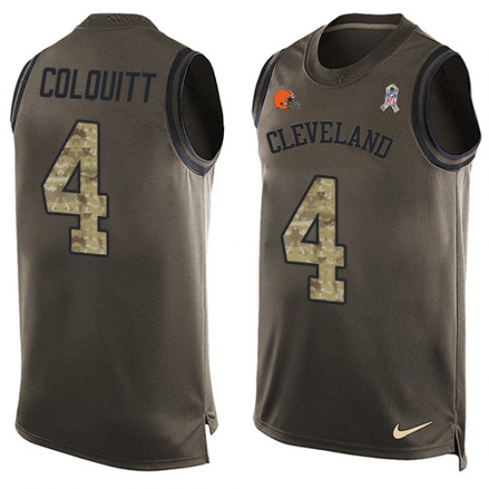 Home>NFL>Cleveland Browns>Britton Colquitt>Men's Nike Cleveland Browns #4 Britton Colquitt Limited Green Salute to Service Tank Top NFL Jersey