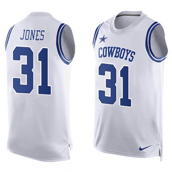Home>NFL>Dallas Cowboys>Byron Jones>Men's Nike Dallas Cowboys #31 Byron Jones Limited White Player Name & Number Tank Top NFL Jersey
