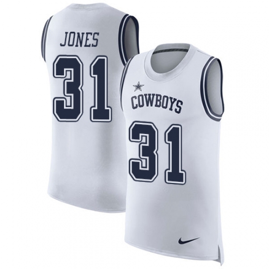 Home>NFL>Dallas Cowboys>Byron Jones>Men's Nike Dallas Cowboys #31 Byron Jones Limited White Rush Player Name & Number Tank Top NFL Jersey
