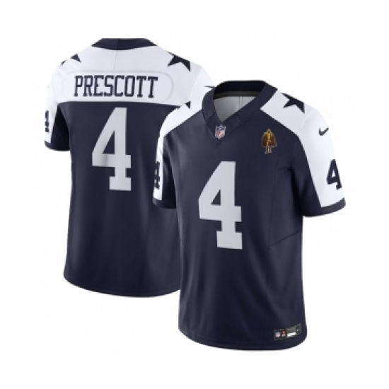 >Men's Nike Dallas Cowboys #4 Dak Prescott Navy 2023 F.U.S.E. Walter Payton Thanksgiving Limited Football Stitched Jersey