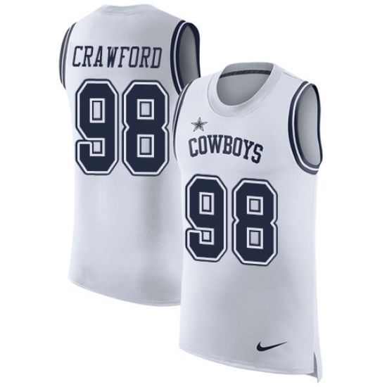 Men's Nike Dallas Cowboys #98 Tyrone Crawford Limited White Rush Player Name & Number Tank Top NFL Jersey