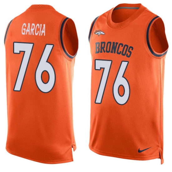 Home>NFL>Denver Broncos>Max Garcia>Men's Nike Denver Broncos #76 Max Garcia Limited Orange Player Name & Number Tank Top NFL Jersey