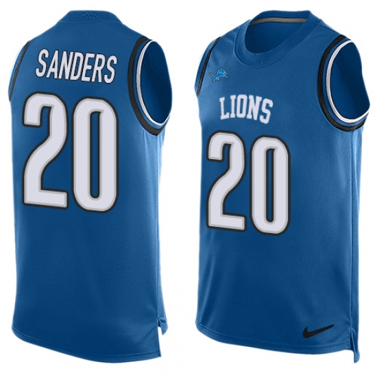 Home>NFL>Detroit Lions>Barry Sanders>Men's Nike Detroit Lions #20 Barry Sanders Limited Light Blue Player Name & Number Tank Top NFL Jersey